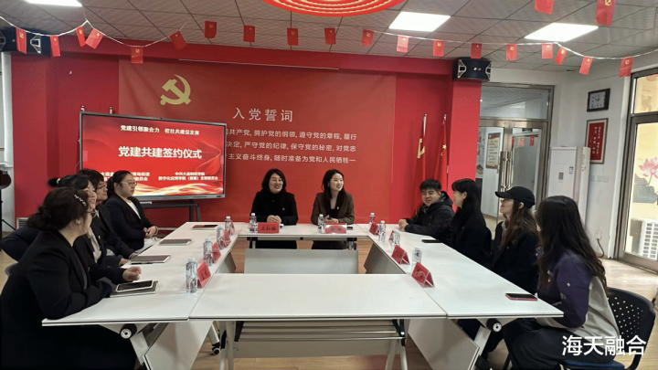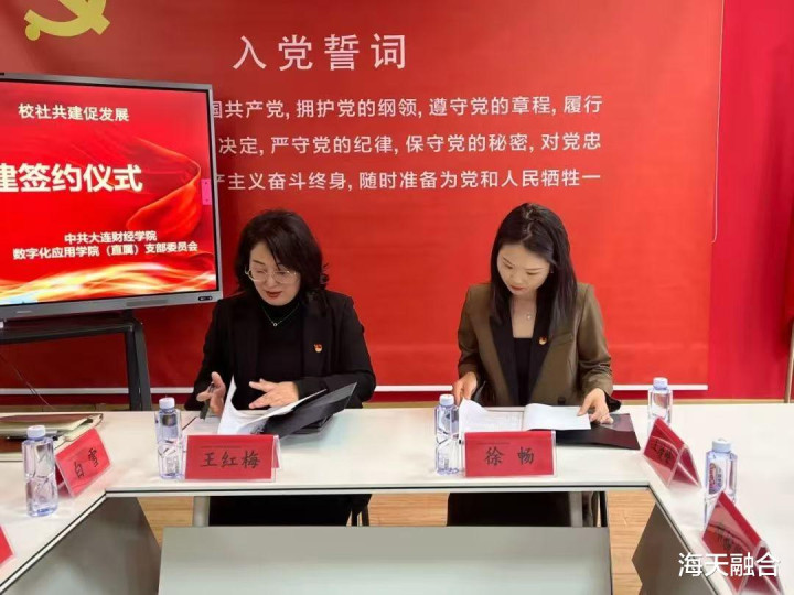 近日,海青岛街道金源名府社区党群服务中心内党旗高扬、气氛热烈,一场以“党建引领聚合力 社校共建促发展”为主题的党建共建签约仪式在此举行。海青岛街道金源名府社区党总支与大连财经学院数字化应用学院(直属)党支部正式签署共建协议,通过组织共建、活动共办、资源共享、服务共促、难题共解的“五联”机制,开启社校协同发展的新篇章。本次仪式由金源名府社区党总支书记王红梅、数字化应用学院(直属)党支部副书记徐畅、团委书记王凌峰及部分社校代表共同参与。